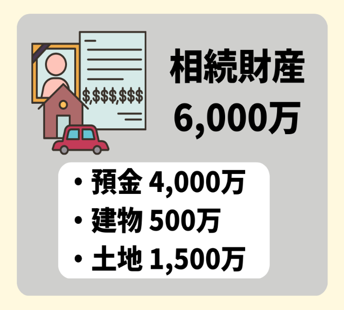 ・相続財産6,000万円(預金4,000万円、自宅建物500万円、自宅土地1,500万円)
